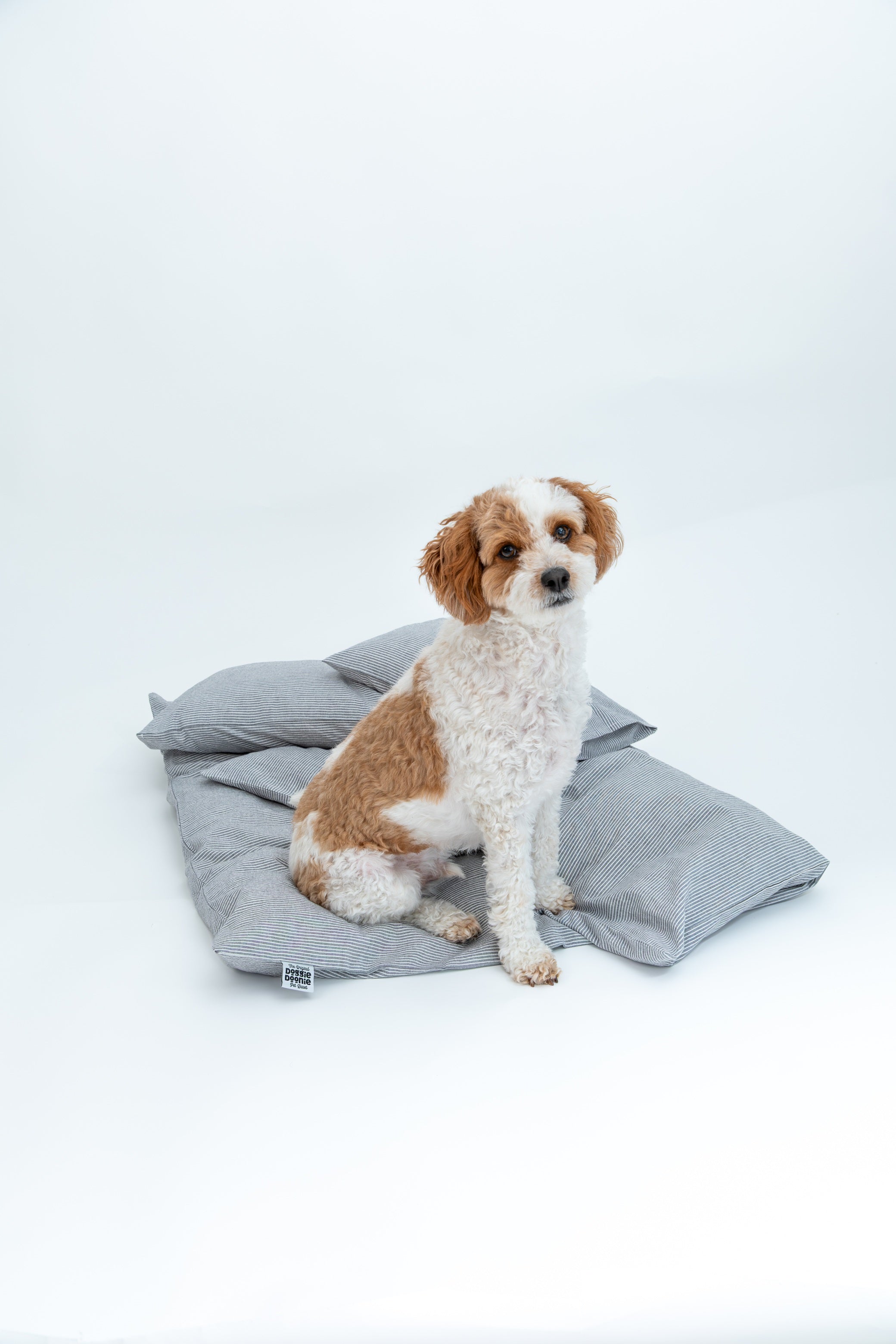 The original pet doona โ a cozy, stylish and portable bed accessory for your pup. The Doggie Doonie includes a plush dog doona, cover, pillows and pillowcases, all made from high-quality, washable materials for easy care. Spare cover sets are also available separately.
