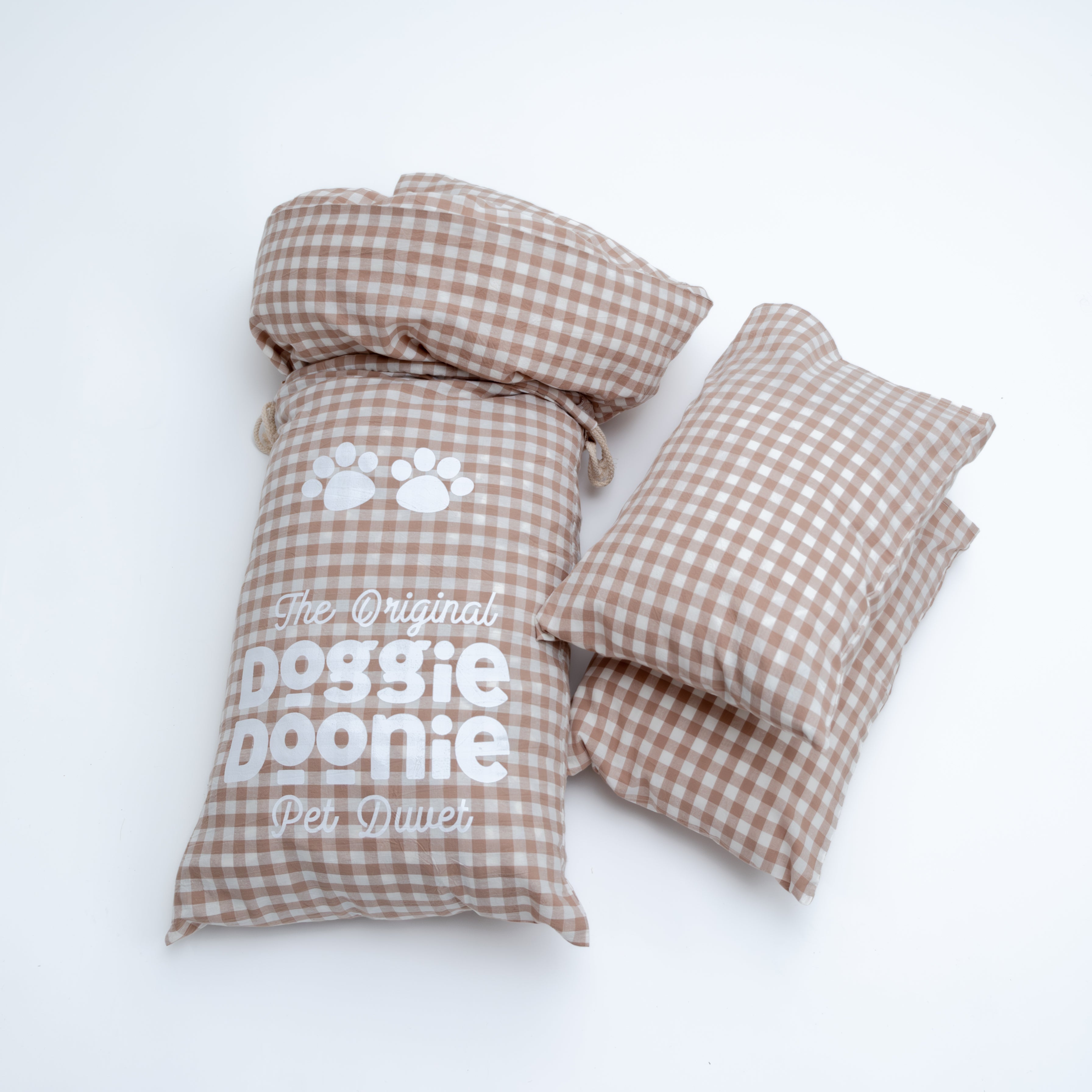 Our Doggie Doona set includes 1 x Dog Doona, 1 x Doona Cover, 2 x Pillows, and 2 x Pillowcases.