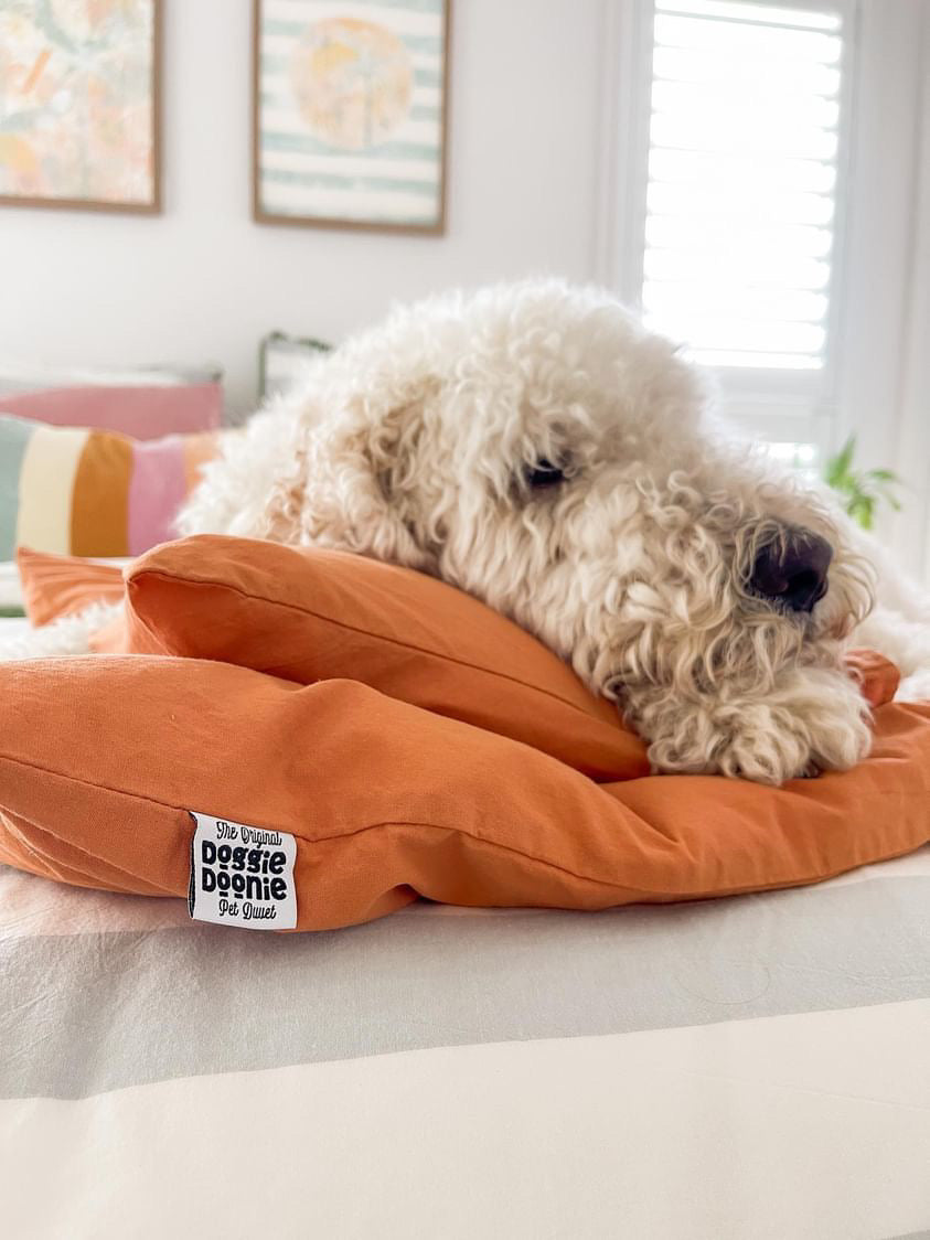 Our Doggie Doona set includes 1 x Dog Doona, 1 x Doona Cover, 2 x Pillows, and 2 x Pillowcases.